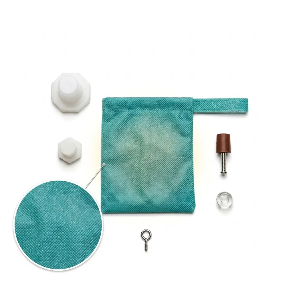 Embalagem técnica confeccionada em SMS trilaminado (Spunbond + Meltblown + Spunbond), desenvolvida para o acondicionamento e esterilização de tampas, agulhas, peças pequenas e itens delicados utilizados em procedimentos médicos e hospitalares.