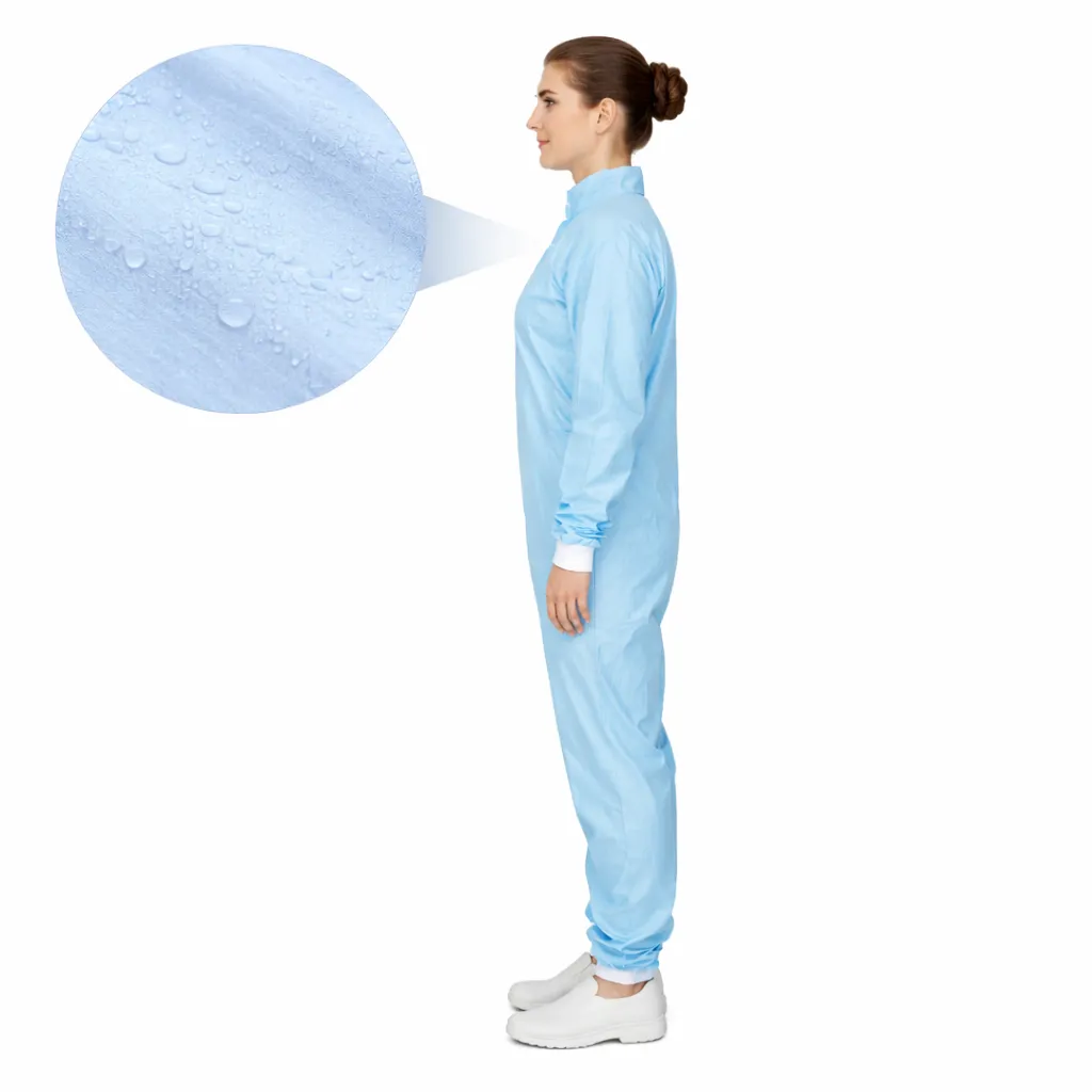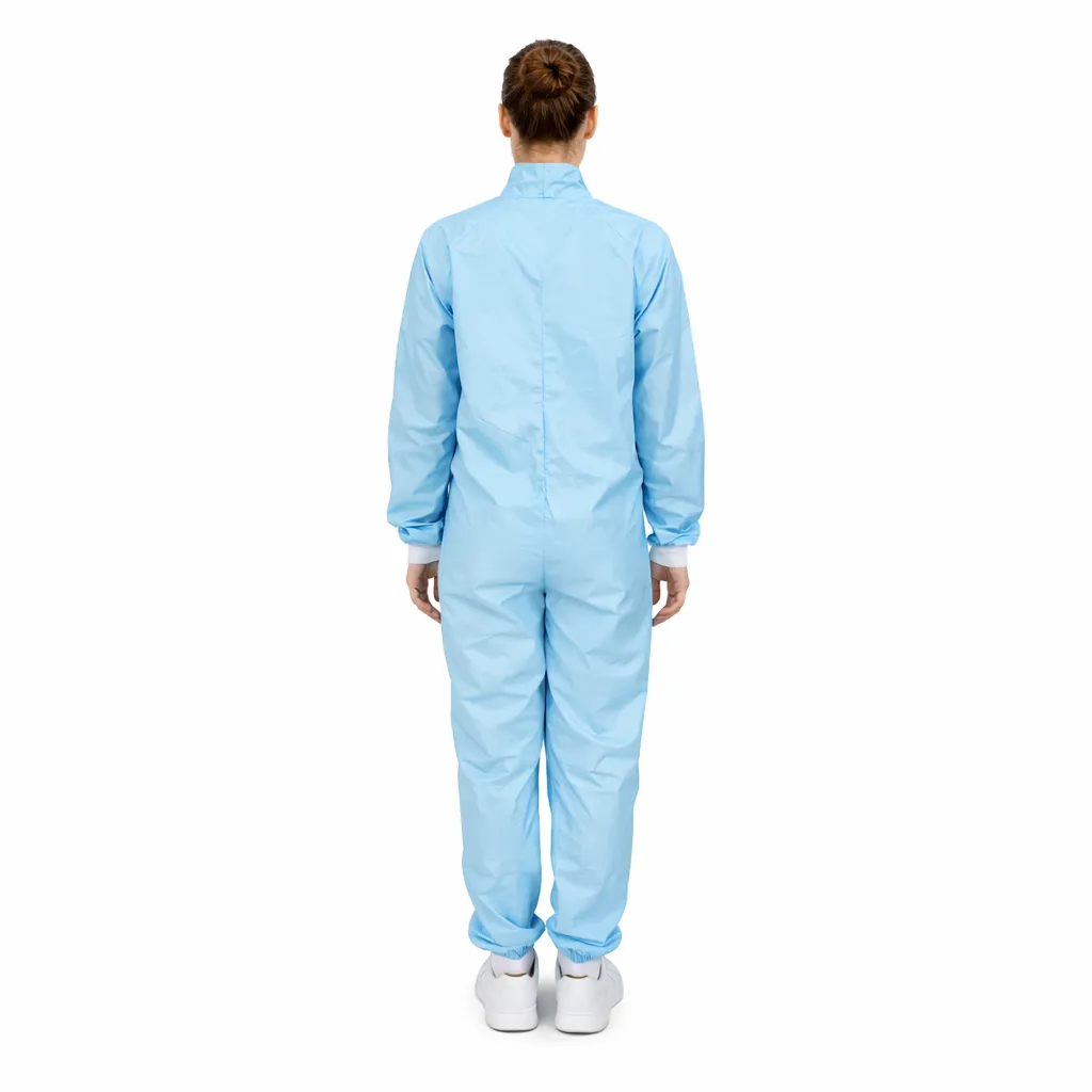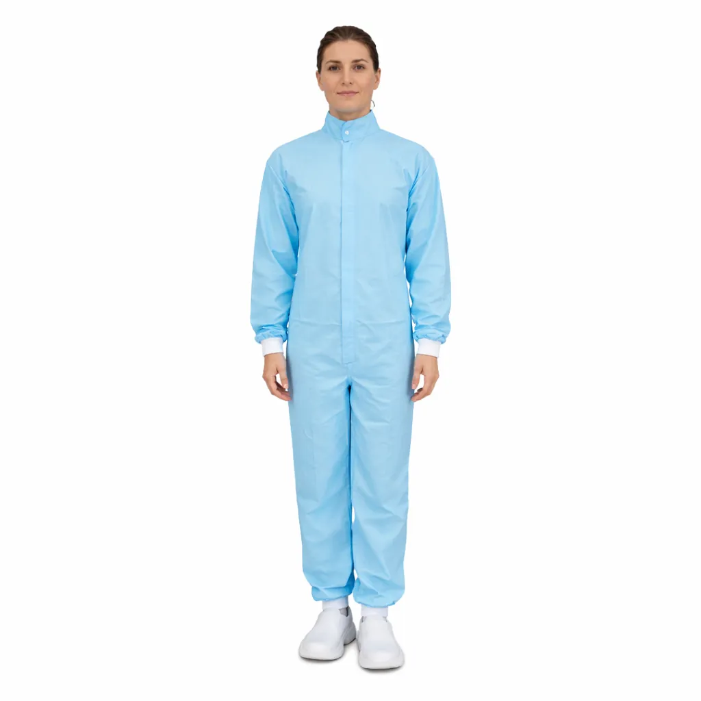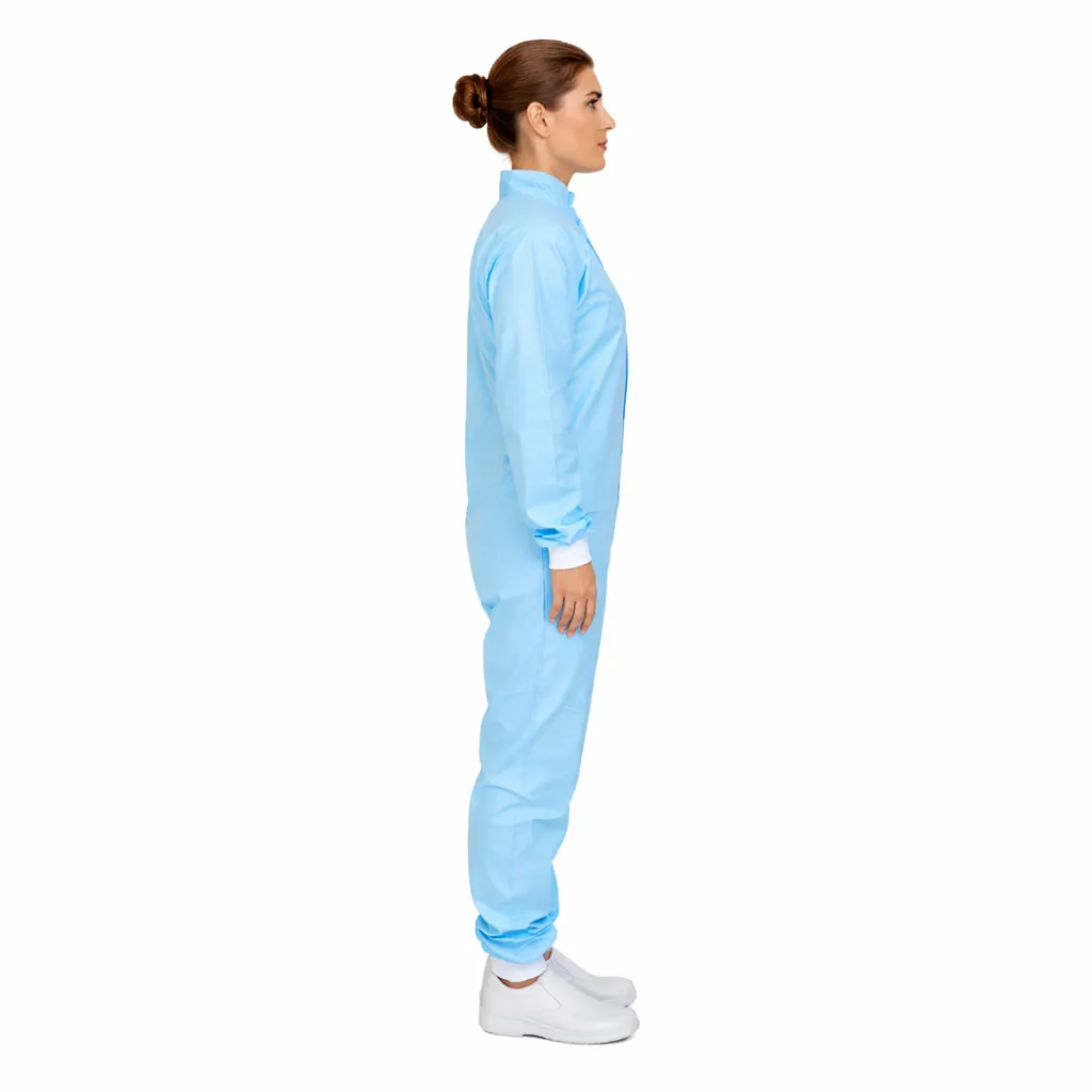 Macacão manga longa confeccionado em tecido 100% poliéster, desenvolvido exclusivamente pela Cotebras para uso em ambientes controlados e salas limpas ISO7.