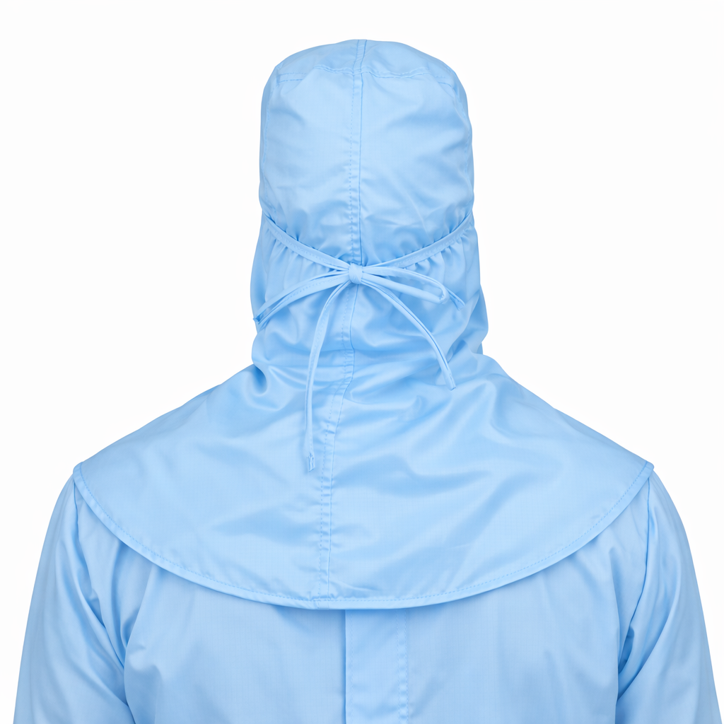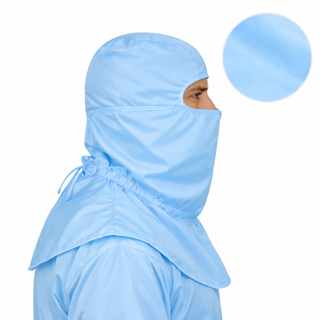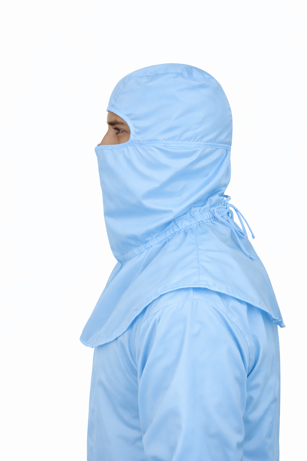Touca fabricada com tecido exclusivo 98% poliéster e 2% carbono, produzida pela Cotebras com costura especial para uso em salas limpas e ambientes controlados.