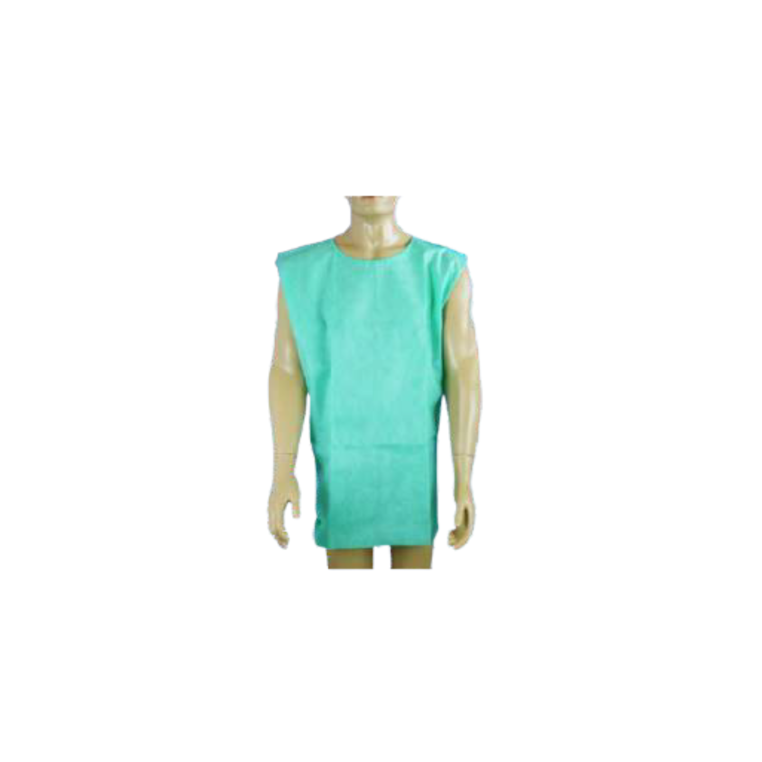 Colete descartável sem mangas, disponível nas cores azul ou branca, confeccionado em SMS trilaminado de 45 g/m².