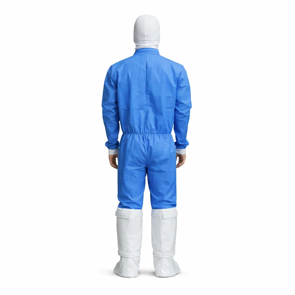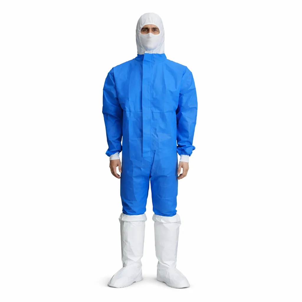 Macacão fabricado em SMS trilaminado, indicado para uso em salas limpas, CME hospitalar, ambientes controlados, cabines de pintura, entre outros.
