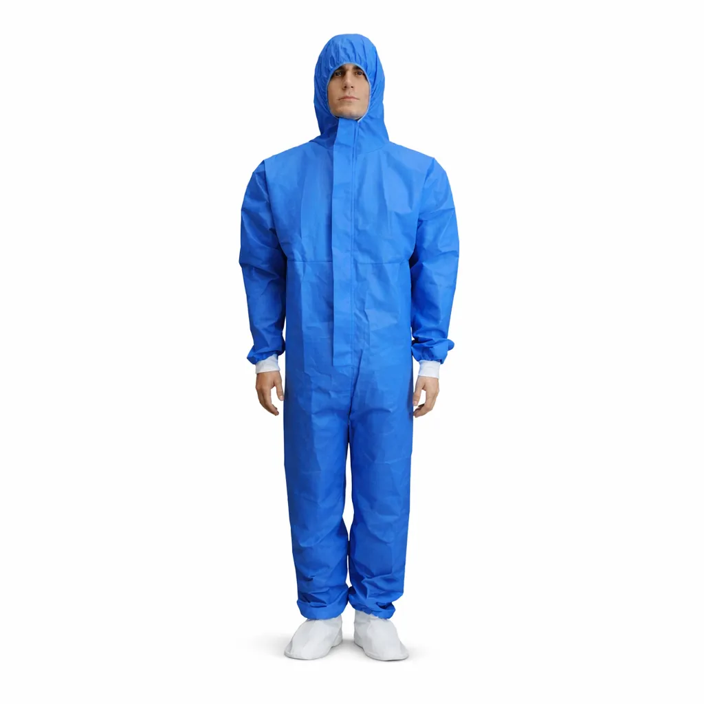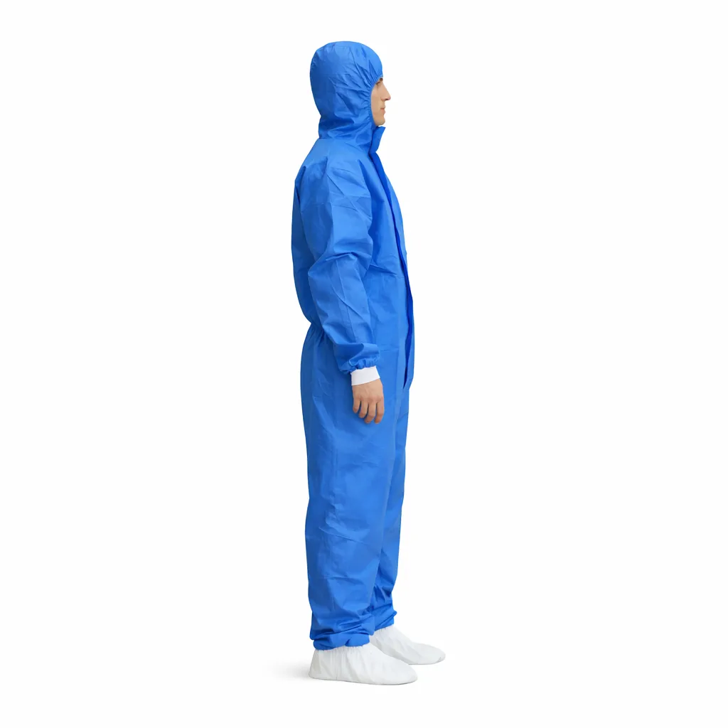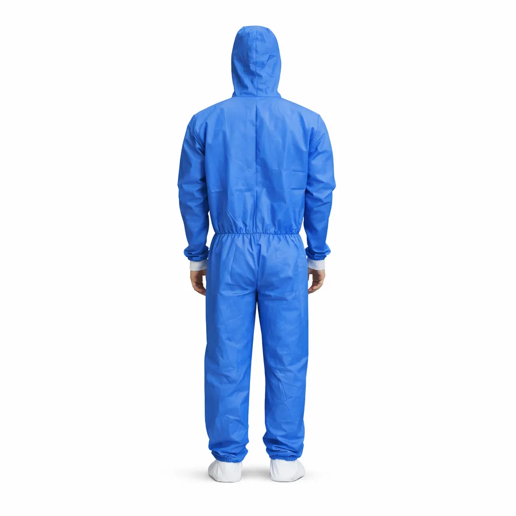 Macacão fabricado em SMS trilaminado, indicado para uso em salas limpas, CME hospitalar, ambientes controlados, cabines de pintura, entre outros.