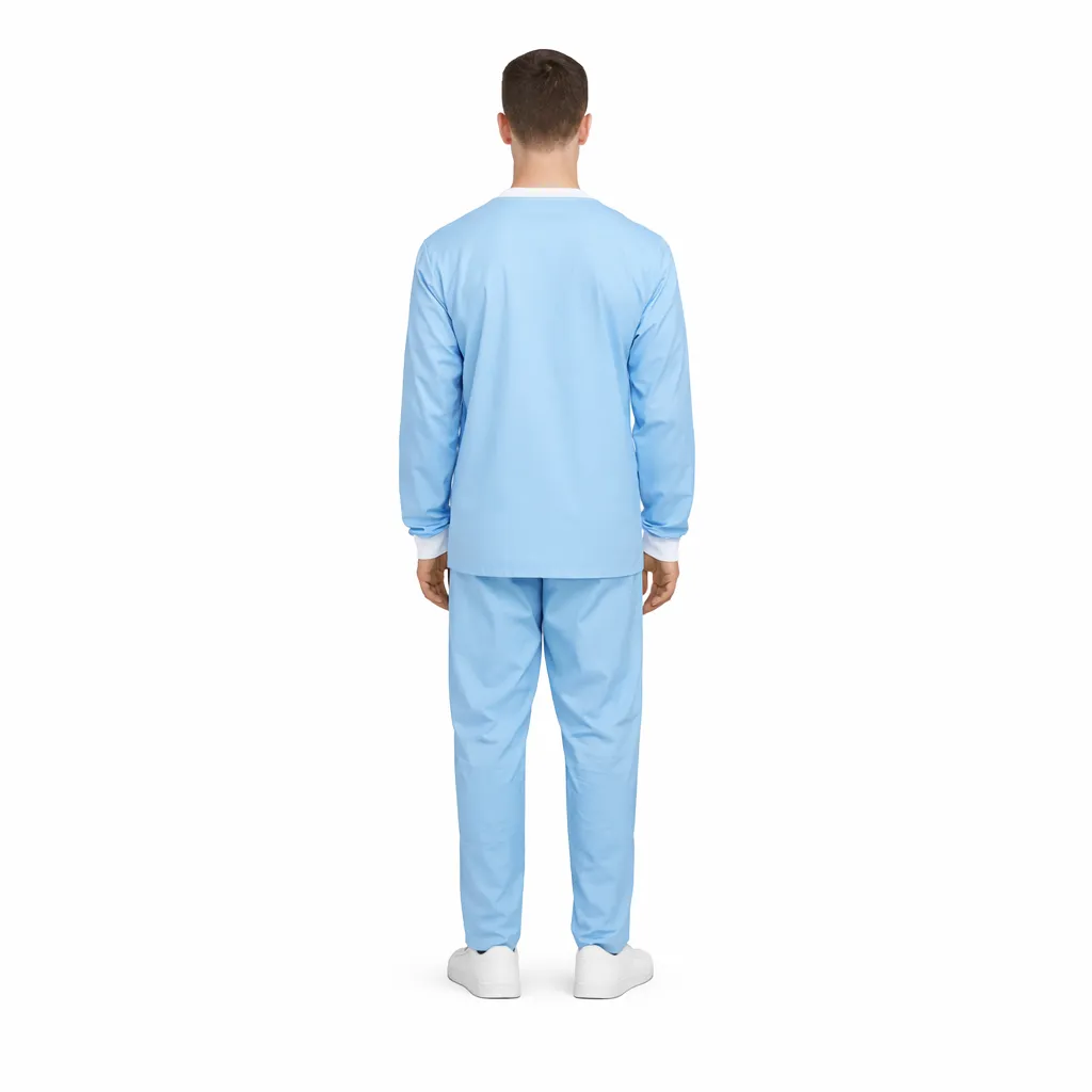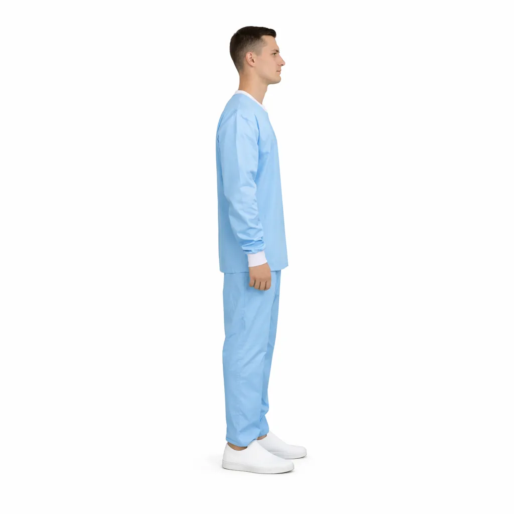 Conjunto (calça comprida + blusa manga longa gola careca ), em tecido 100% poliéster poderá ser utilizada por debaixo de macacão para uso em salas limpas ou ambientes controlados, utilizado como roupa íntima, ou como uniforme profissional