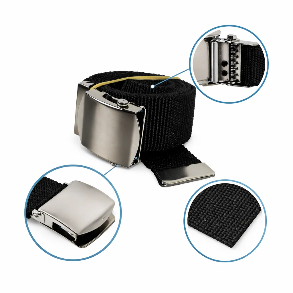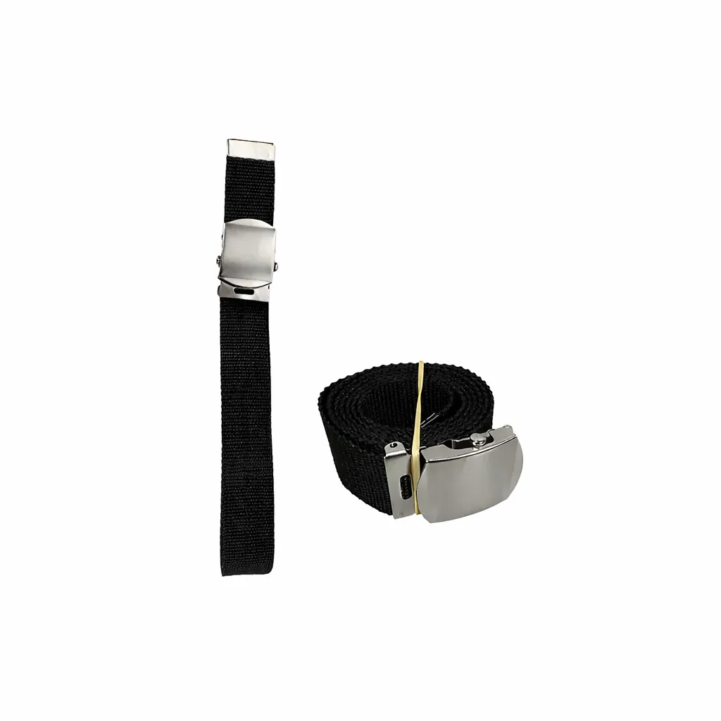 Cinto estilo militar com fivela metálica, ideal para uso com uniformes profissionais em ambientes que exigem praticidade, firmeza e padronização visual. Produto robusto e funcional, com opções de personalização de cor e fivela.