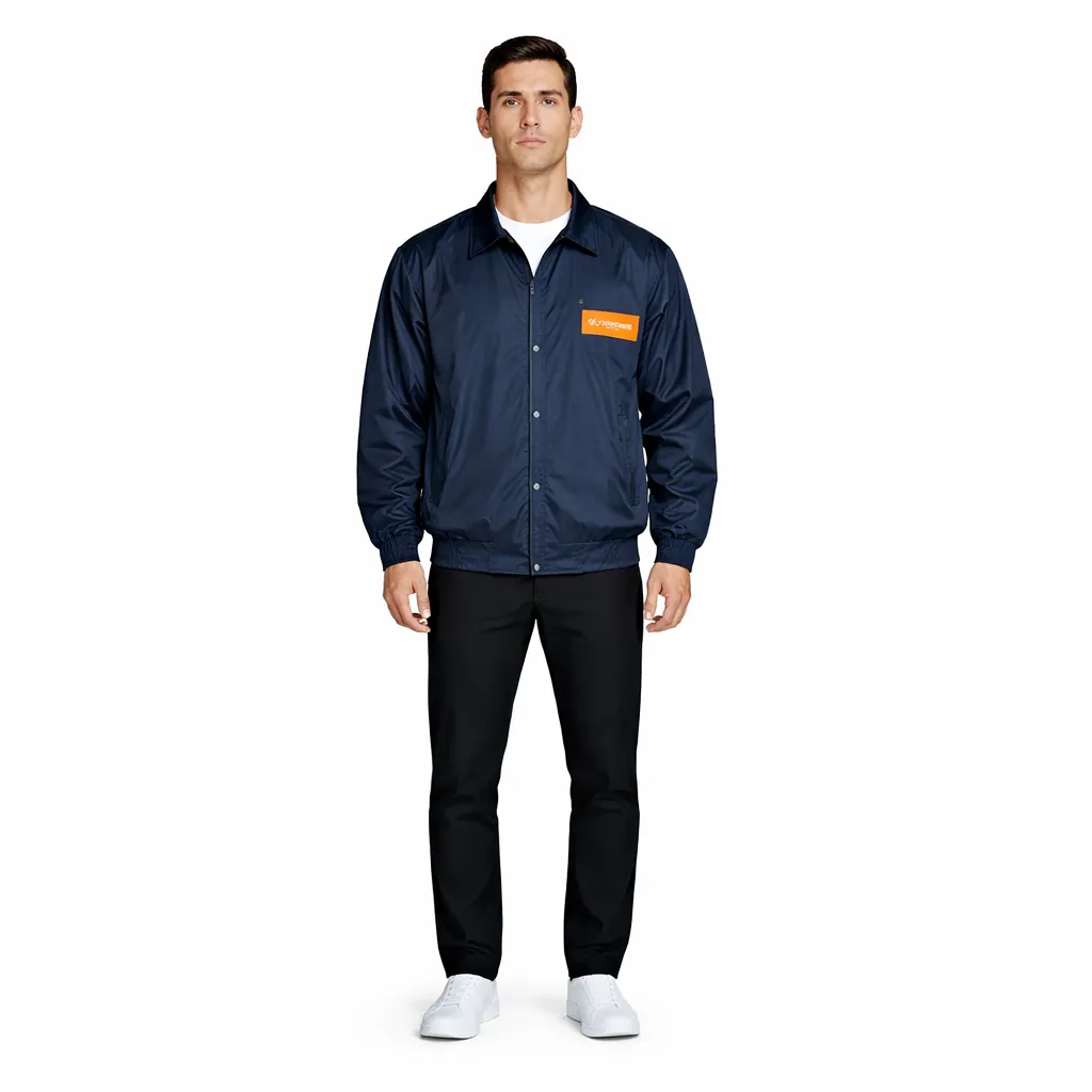 Jaqueta leve e resistente, confeccionada em nylon resinado com acabamento interno em cetim. Indicada para proteção contra vento, umidade leve e uso em ambientes externos ou industriais. Fabricada sob encomenda, com possibilidade de personalização.