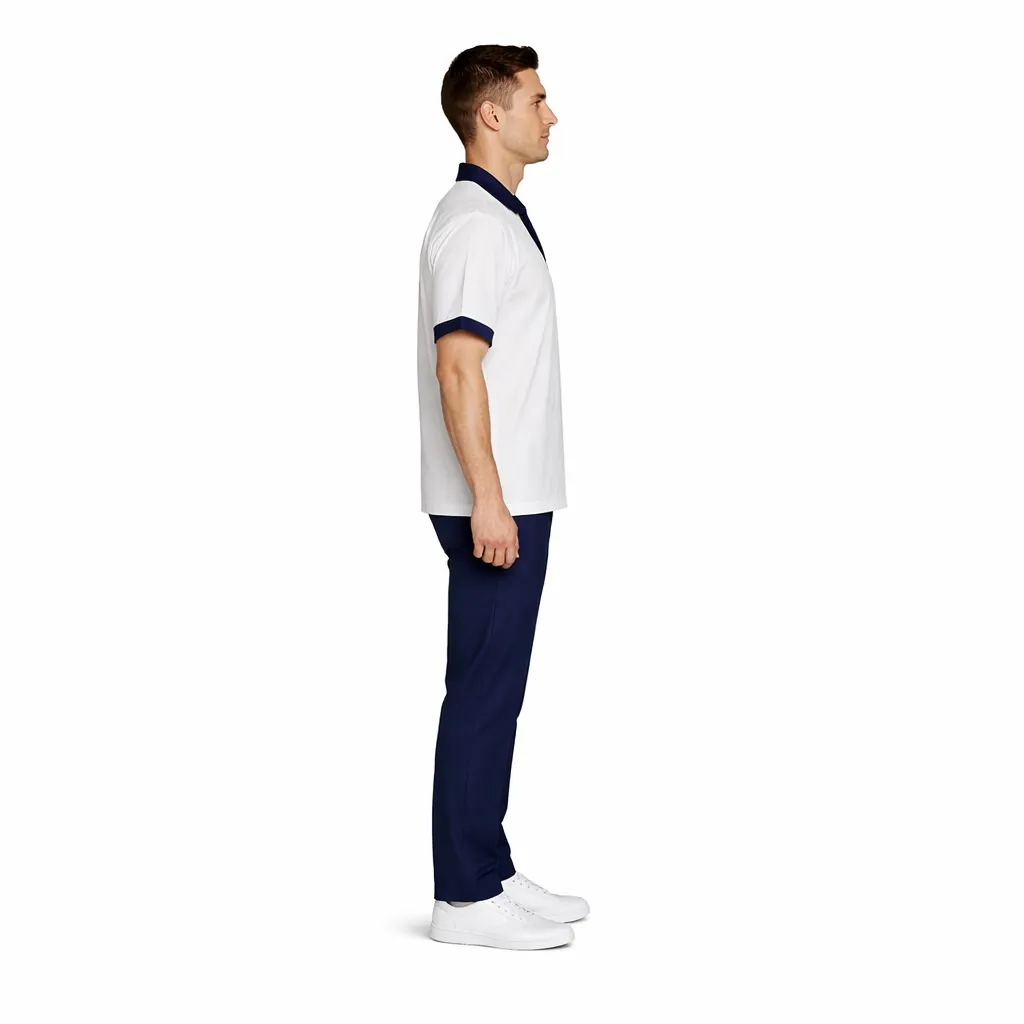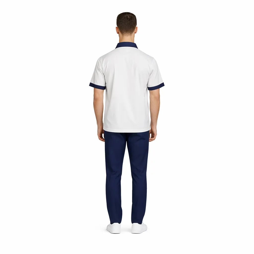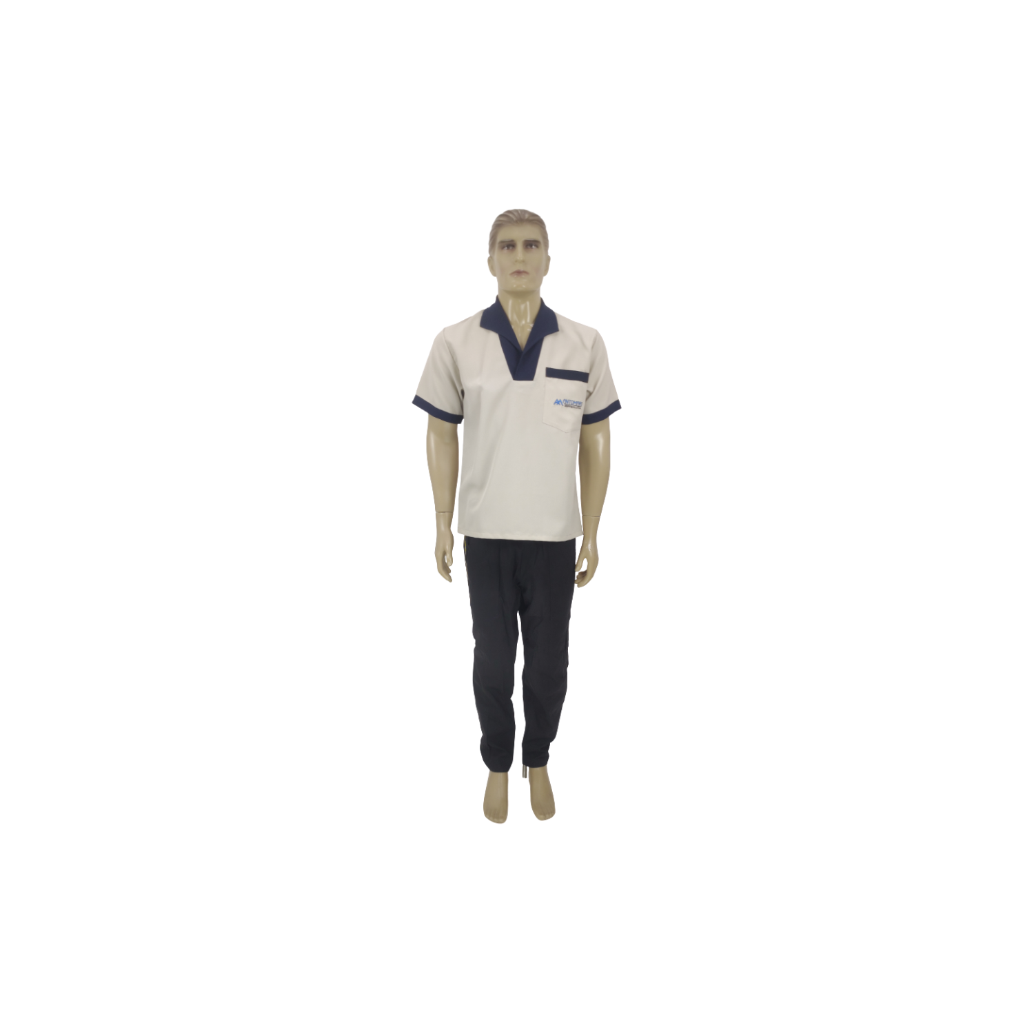 Conjunto confeccionado em brim leve 100% algodão, ideal para ambientes que exigem conforto térmico, durabilidade e apresentação profissional. Composto por jaleco de gola padre e calça com cós elástico.