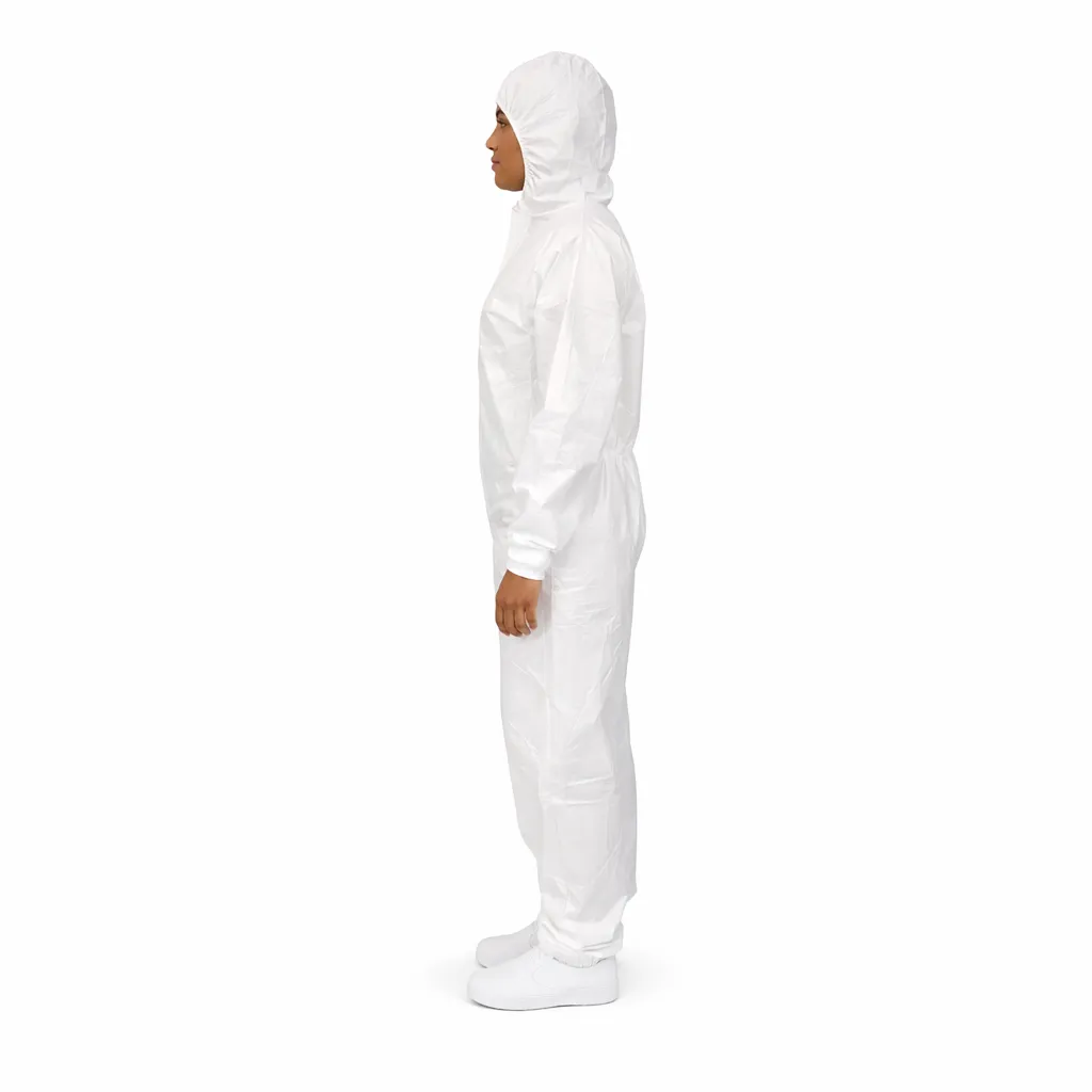 Macacão de proteção com capuz acoplado, confeccionado em material impermeável e leve, com alta respirabilidade para maior conforto durante o uso prolongado. Indicado para diversas aplicações industriais e operacionais.