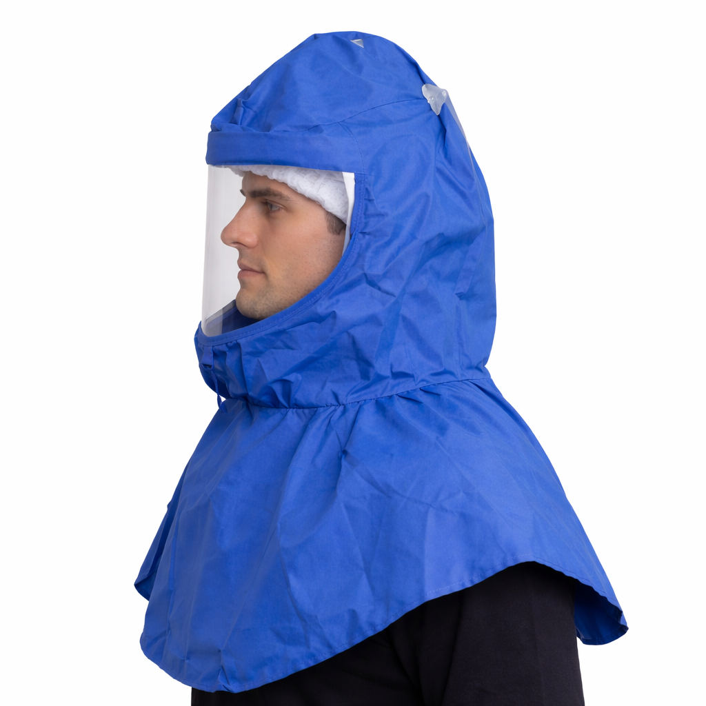 Capuz de segurança desenvolvido para proteção da cabeça e pescoço contra respingos e riscos químicos. Confeccionado em PVC com trama interna de nylon, oferece alta resistência mecânica e impermeabilidade. Possui visor em policarbonato incolor com excelente visibilidade e resistência a impactos. Internamente, conta com carneira ajustável e faixa absorvente de suor, garantindo conforto mesmo em uso prolongado.